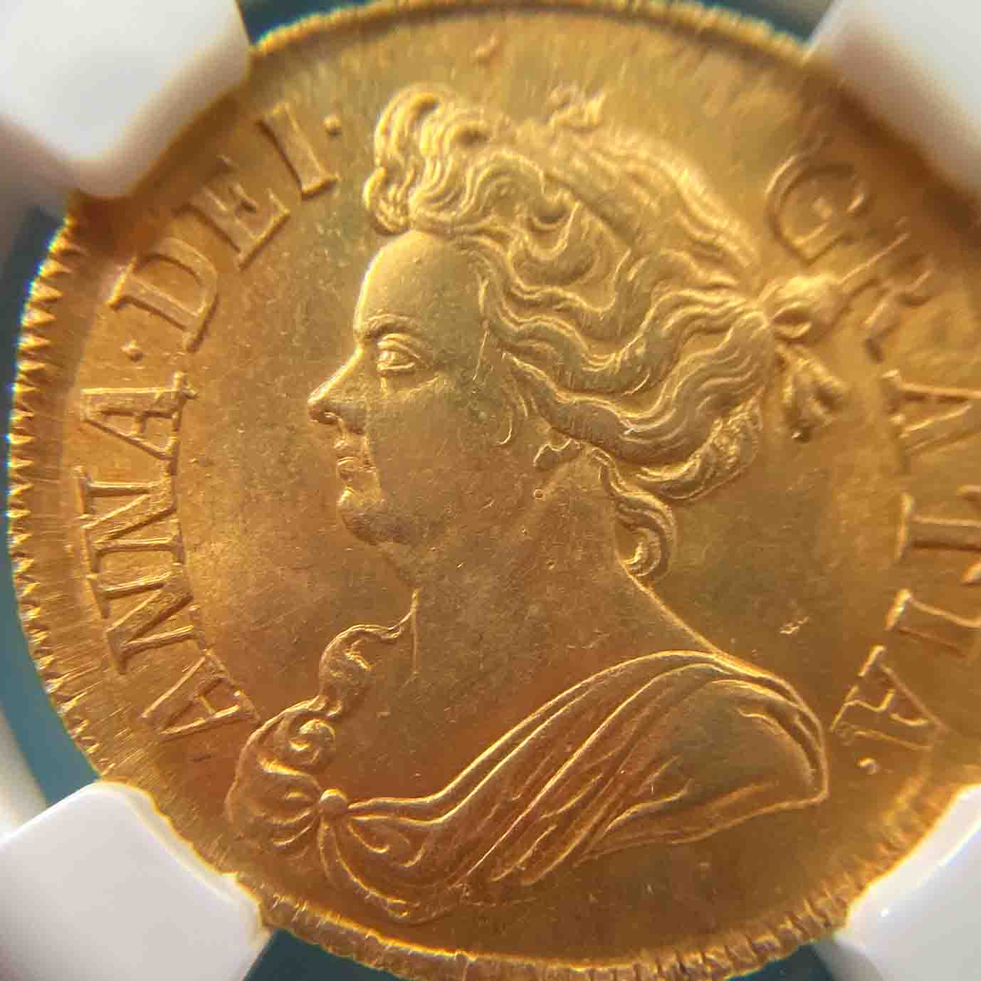●英国ギニー金貨で一番人気が高いのがアン女王金貨です。本品は希少年号1712年の世界最高グレード鑑定品でなおかつたった一枚しか無いレアコインです。投資目線で見てもこれ以上の選択は無いかもしれません!!